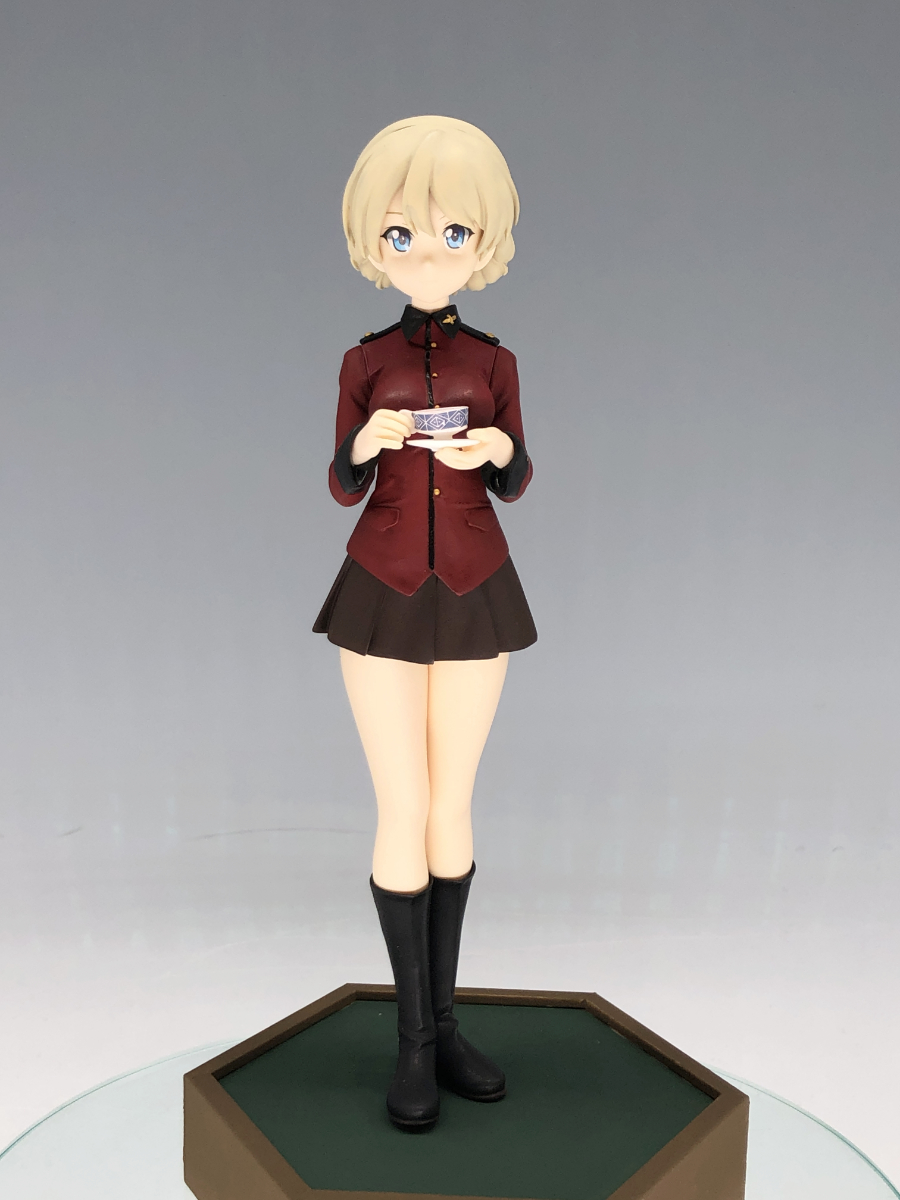 キャラグミンより『ダージリン』でエントリー! スキンカラー以外はファレホ筆塗りとありますがエアブラシで塗装したかにも見えるほど綺麗に塗装されています! 制服などの陰影のつけ方や装飾の塗装をみると筆塗りと感じますがとても可愛くダージリンになっています。