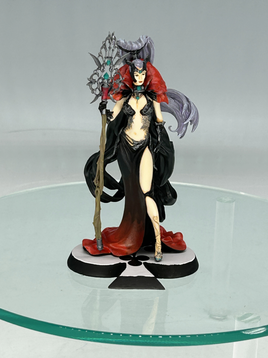 ネギ坊主様はお客様作品でもトランプシリーズの女王を展示してくださっております! その全ての台座の柄は本物のトランプから切り取り貼り付けたと仰っておりそのこだわりを感じます! 優しい女王らしい柔らかい造形のドレスを美しいグラデーションを施し、柔らかな表情も筆塗りで見事に 描き込まれています。ハート、ダイヤの女王も展示されていますのでご来店の際は是非ご覧になってくださいませ!