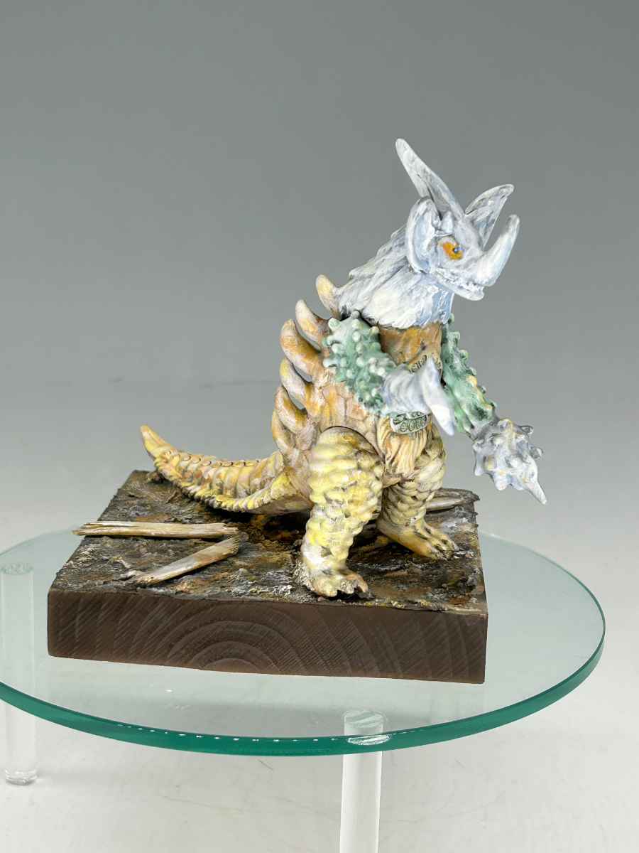 コメント:今回はウルトラ怪獣に挑戦してみました。怪獣の身体の質感を出すためにドライブラシなどにこだわってみました今回はライトグレイやデッドホワイトが活躍してくれました。