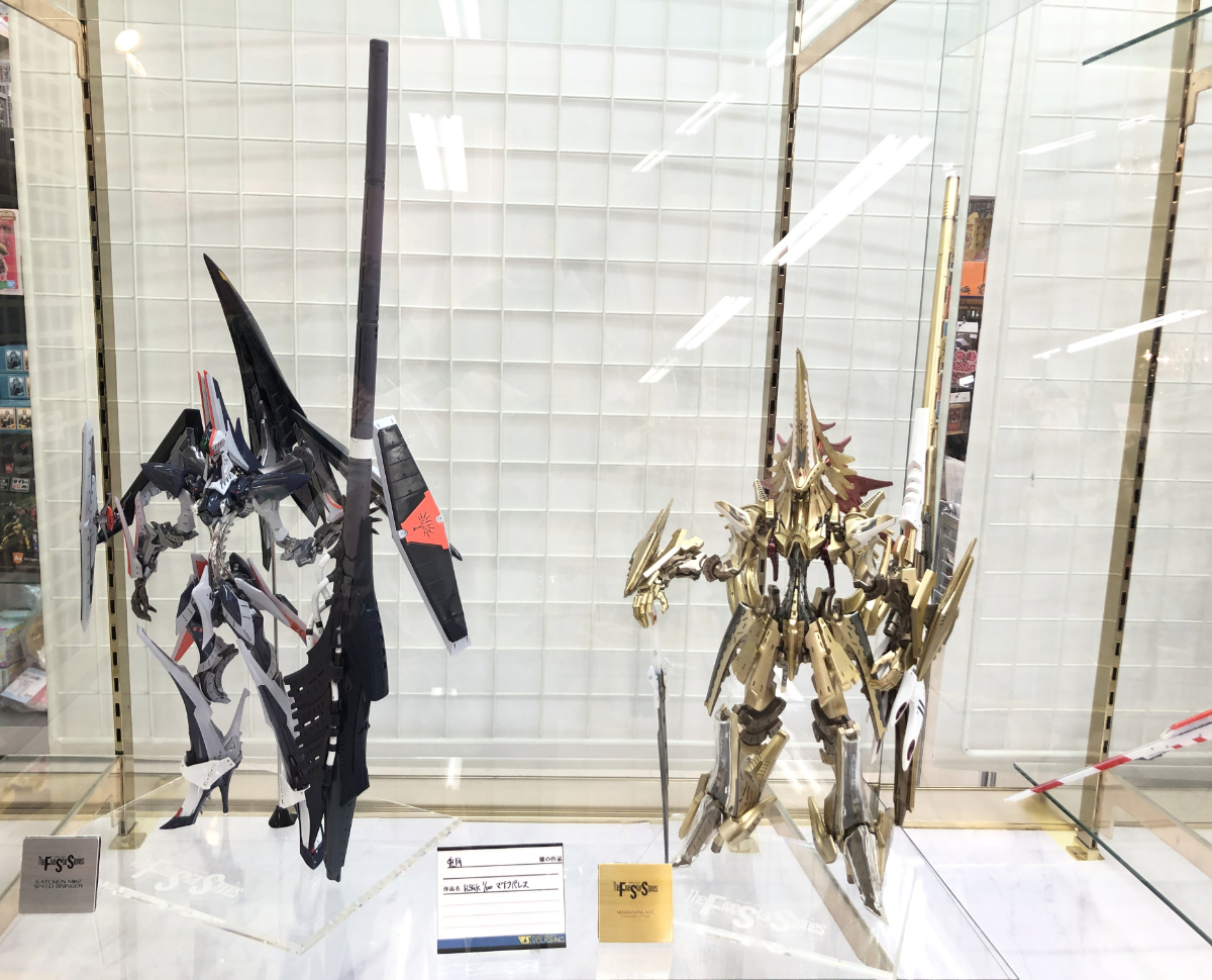 表のショーケースが豪華に!!!大きすぎて少しだけ映りこんでいますがHSGK 1/72 ツァラトウストラ・アプターブリンガーのフレームランチャーがチラッと見えてますがHSGK 1/72 帝騎マグナパレス ザ・ナイト・オブ・ゴールドと見事に3騎並んでいますよ!!!
