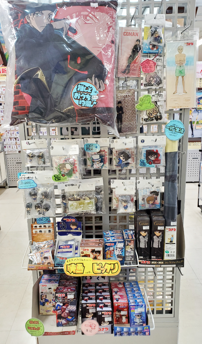 今注目作品の名探偵コナンの他にも様々な人気作品のコーナーや予約情報など、沢山のグッズや注目情報が盛りだくさんなので、広島ショールームにお越しの際はキャラクターグッズコーナ―もぜひご覧ください。