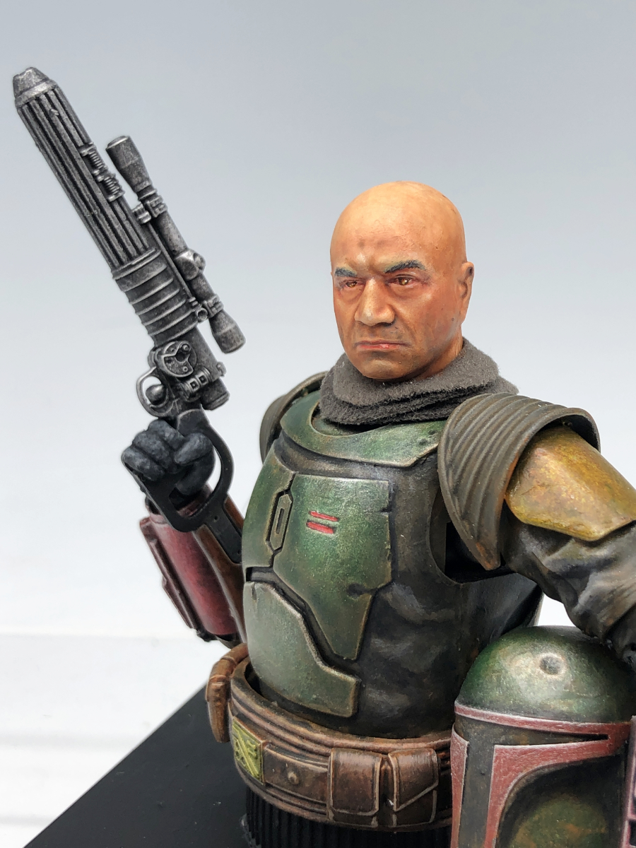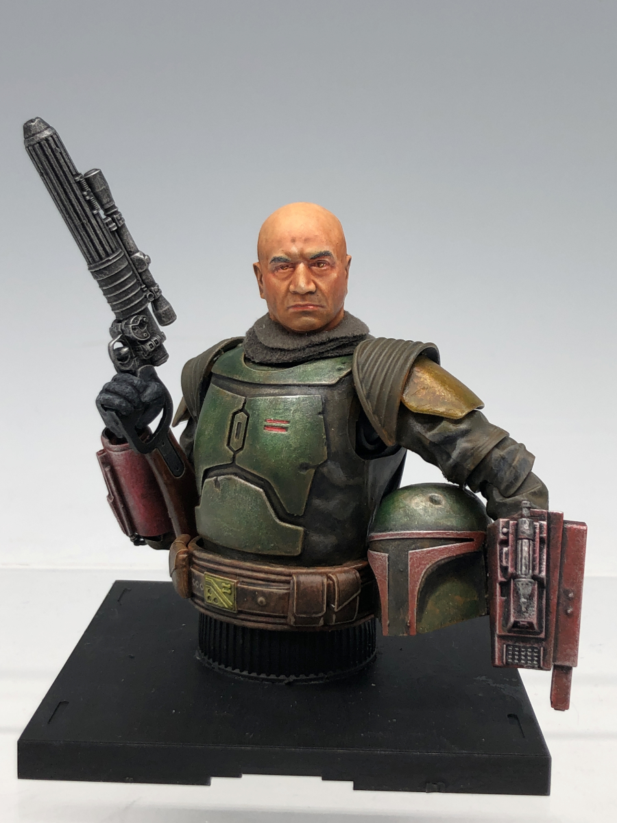 テムエラ・モリソンをイメージしたのでしょうか?!とてもそっくりに塗装されていてビックリしました。アーマーには銀のドライブラシ?でしょうか。光の当たるところにハイライトとして入れているのが技を感じますね。お顔も様々な色を加えたのでしょう‥個人的に顔の凸部分の明るい色の選択にはセンスしか感じませんでした!頬骨、ほうれい線、眉間、鼻の部分に注目してみてください!