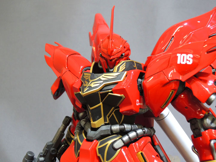 塗装については、赤は缶スプレーのMAX塗りで、黒とスラスターの金色、装甲部分のスミ入れにファレホを使用しています。