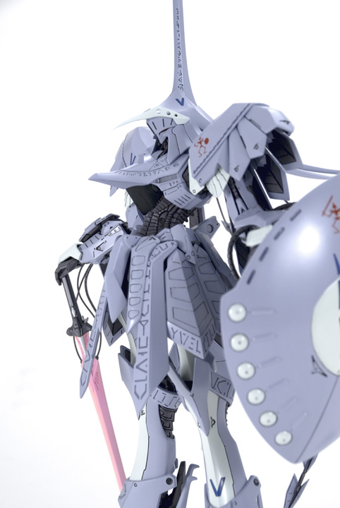 なんとこのキット、肩やベイルの"踊る人形"はもちろんのこと、頭部や肩部、スネなどの「V」の字型のマーク、ベイルの稲妻を思わせるマークや「静」の文字まですべてモールドで再現されております!!