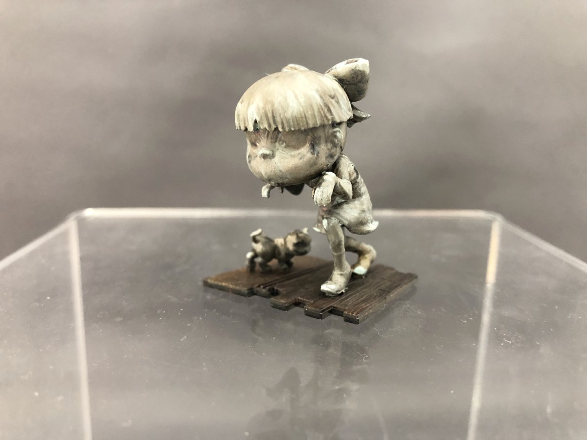 下地黒、調色した銅、ウォッシュブラックで暗くして緑青でそれっぽくしました。