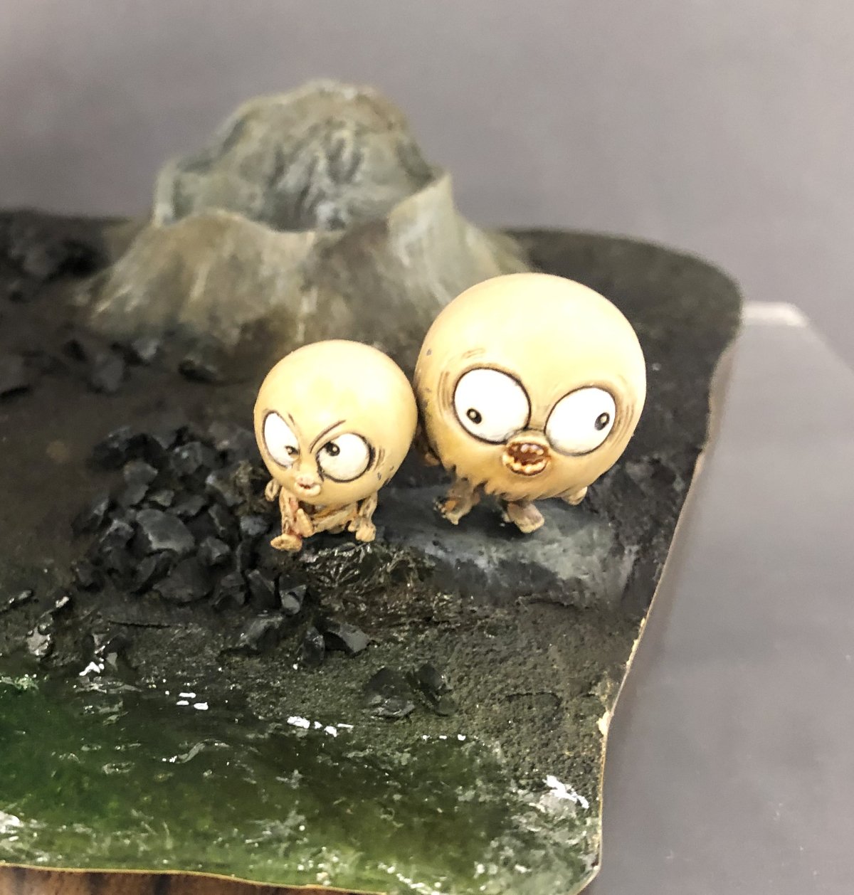 恐竜やねこ娘の塗装はもちろんですが、流れる川の表現にも注目です。