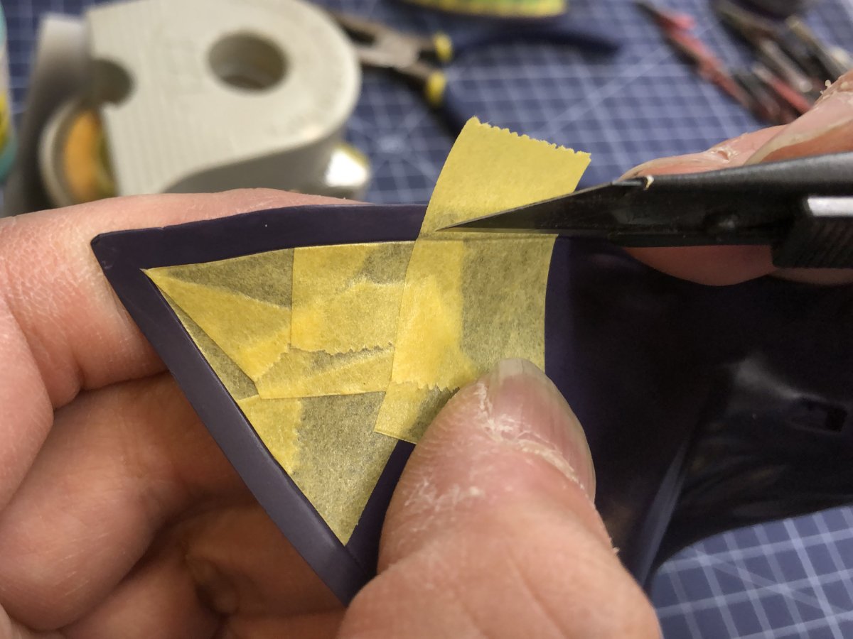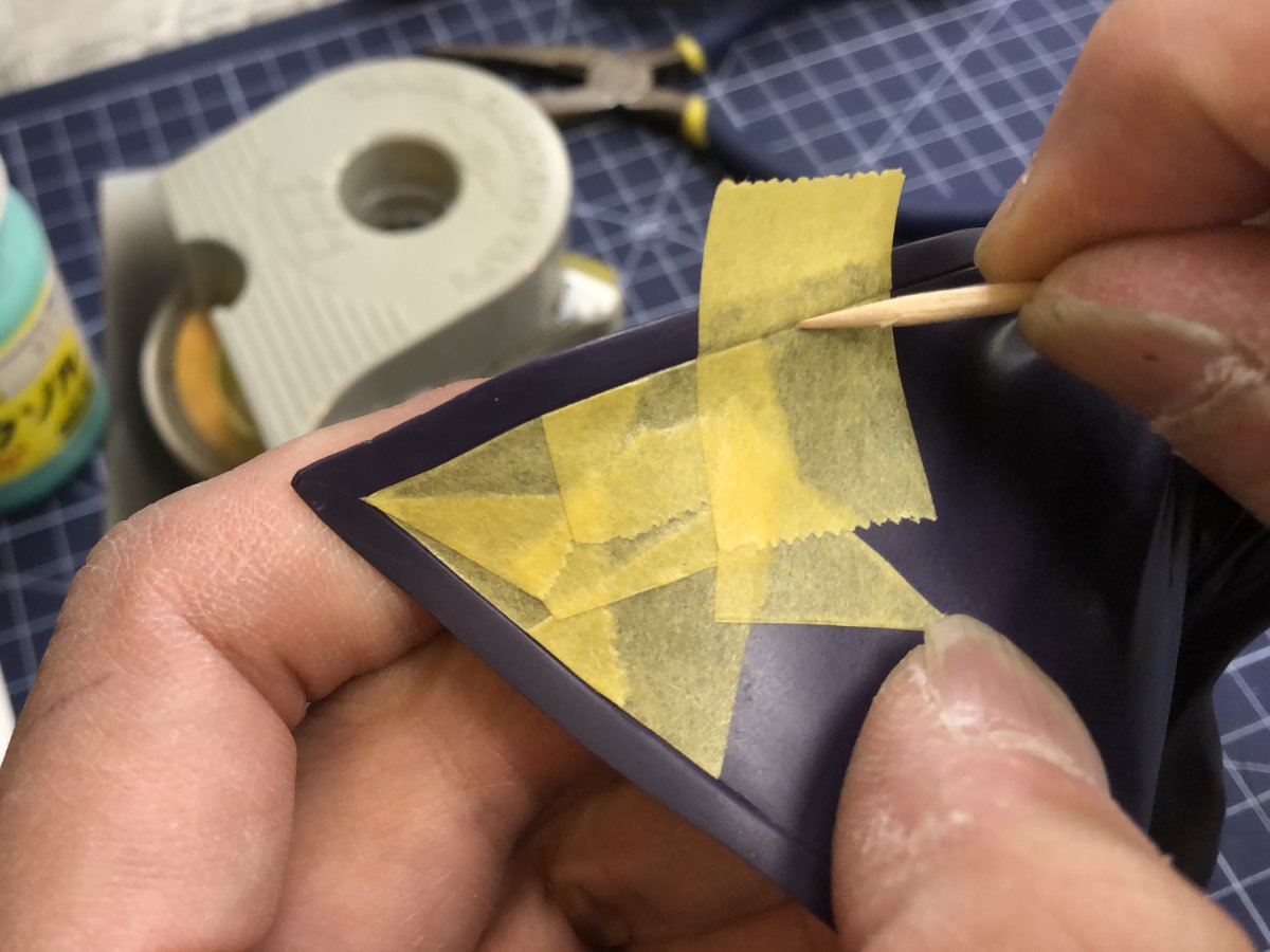 フチの部分はモールドが入っておりますので、そのモールドに合わせて隙間が出来ないように「マスキングテープ」をしっかりと貼り付けていきます。