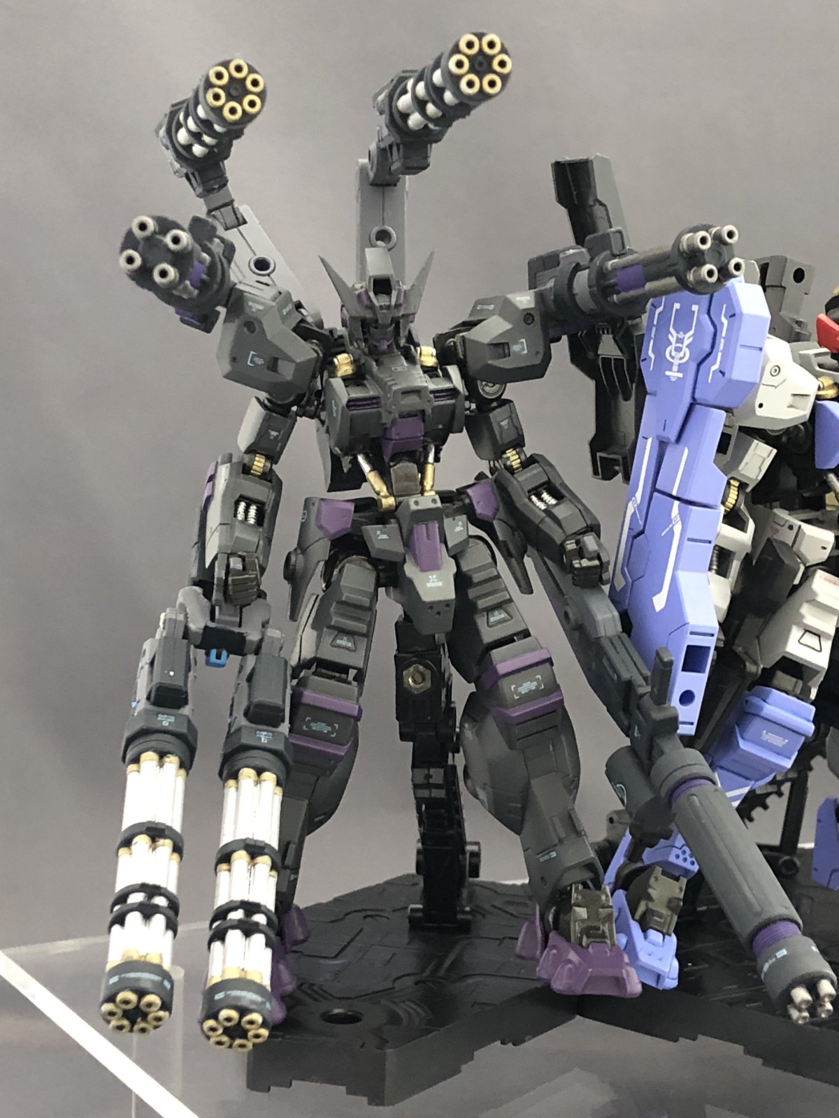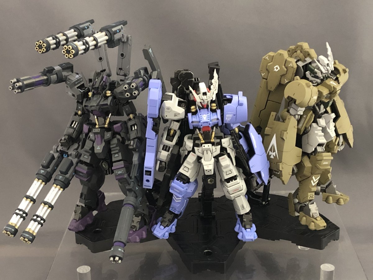 1作目はガンダムアスタロトリナシメントを3体使用した作品、近接タイプと射撃特化タイプは左右非対称のリナシメントを2体を左右対称になるよう組み替えたものをベースに作られたそうです。
