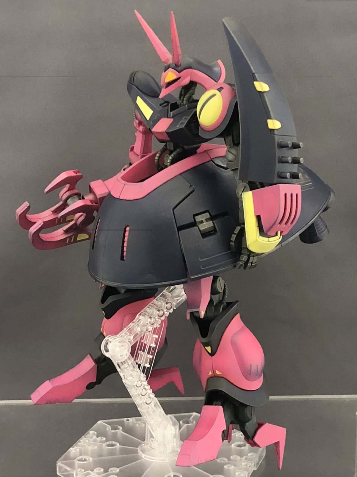 1/144スケールですがボリュームは1/100のMGくらいあるキットですので、筆塗りでもなかなかに大変だったと思いますが、ピンクがムラなくきれいに発色していて良いですね~