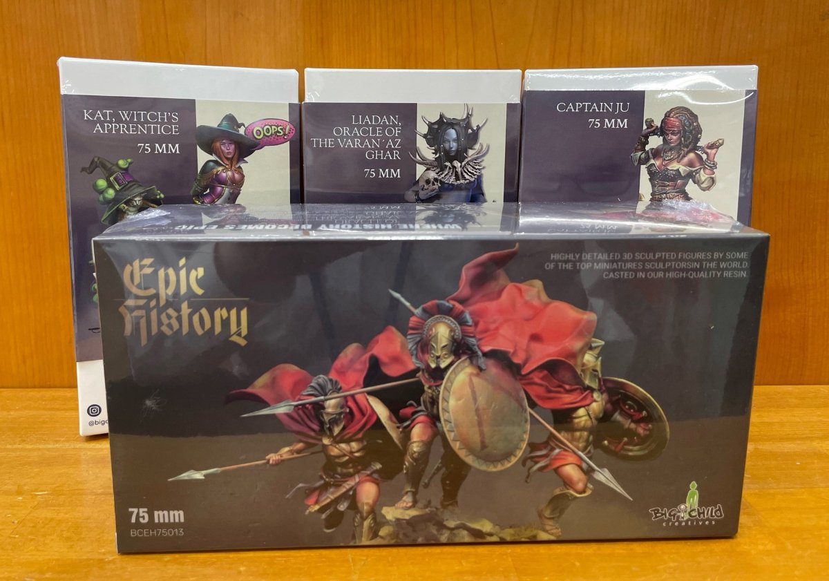 こちらは全て75mmのスケールで「預言者リアダン」「キャプテン・ユウ」「猫魔女の弟子」と「スパルタ兵セット」!