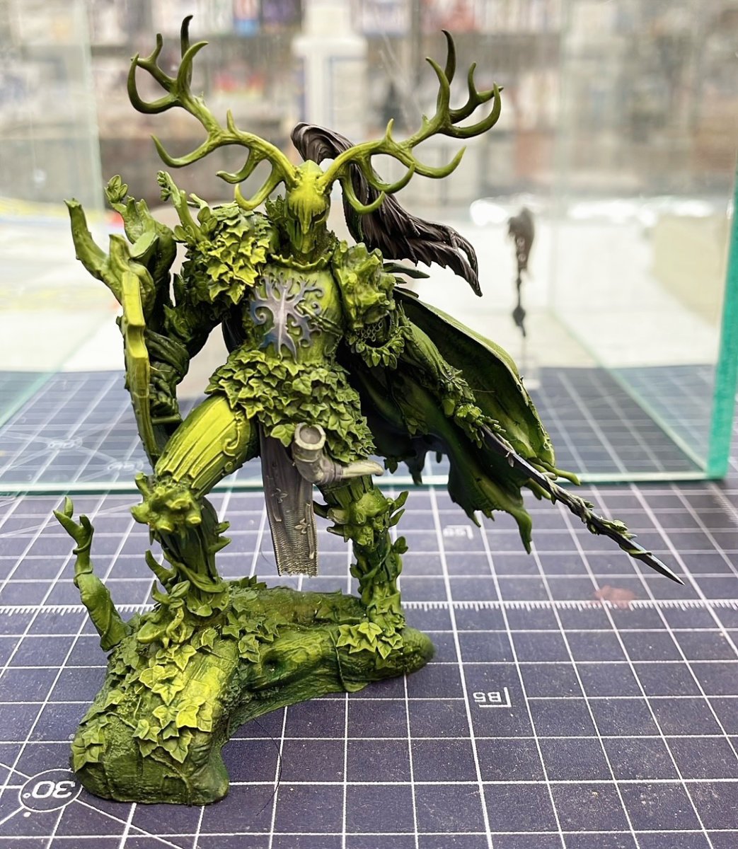 今回の実演では、以前の実演で本体の塗装を行ったビッグチャイルド「緑の騎士」に追加で盾と台座に塗装を行いました。