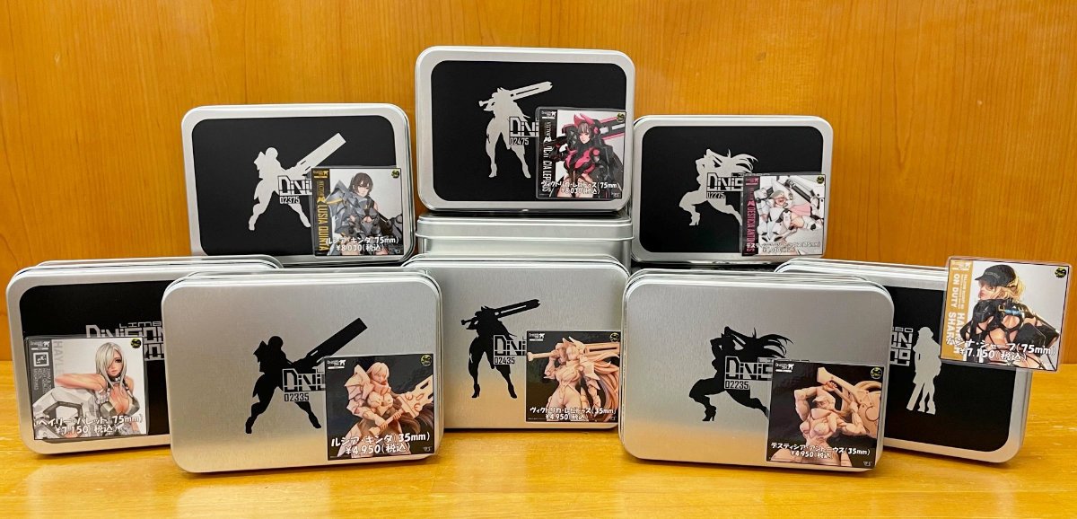 中でも「ヴィクトリカ・レピドゥス(75mm)」、「ルシア・キンタ(75mm)」、「デスティシア・アントニウス(75mm)」の3体は付属の専用ベースで合わせて展示ができます。