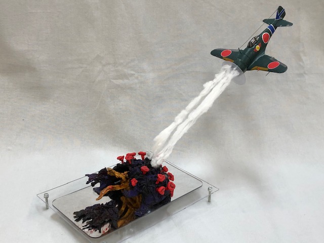 巨大コロナウィルスに突貫する鍾馗の雄姿が印象的なアイデアジオラマです。