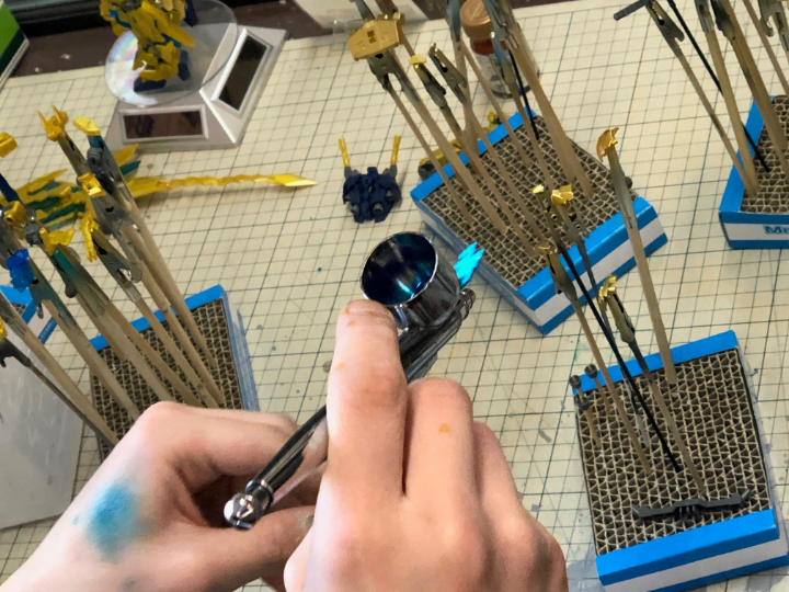 今回はガンプラHGの「フェネクス」を使用して金色塗装の実演を行いました!!