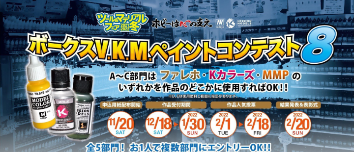 前回のV.K.Mペイントコンテスト7からレギュレーションや部門分けに一部変更が加わっておりますのでご注意ください。