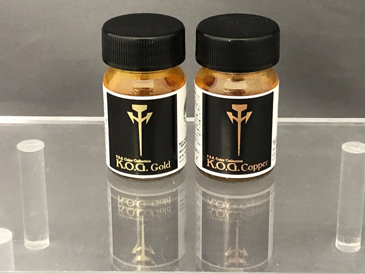 ※IMS「ザ・ナイト・オブ・ゴールド(通常版)」1体のフル塗装には「K.O.G. ゴールド」×3本、「K.O.G. カッパー」×1本を推奨します。(あくまでも目安であり、塗料の使用量は人によって異なります。)