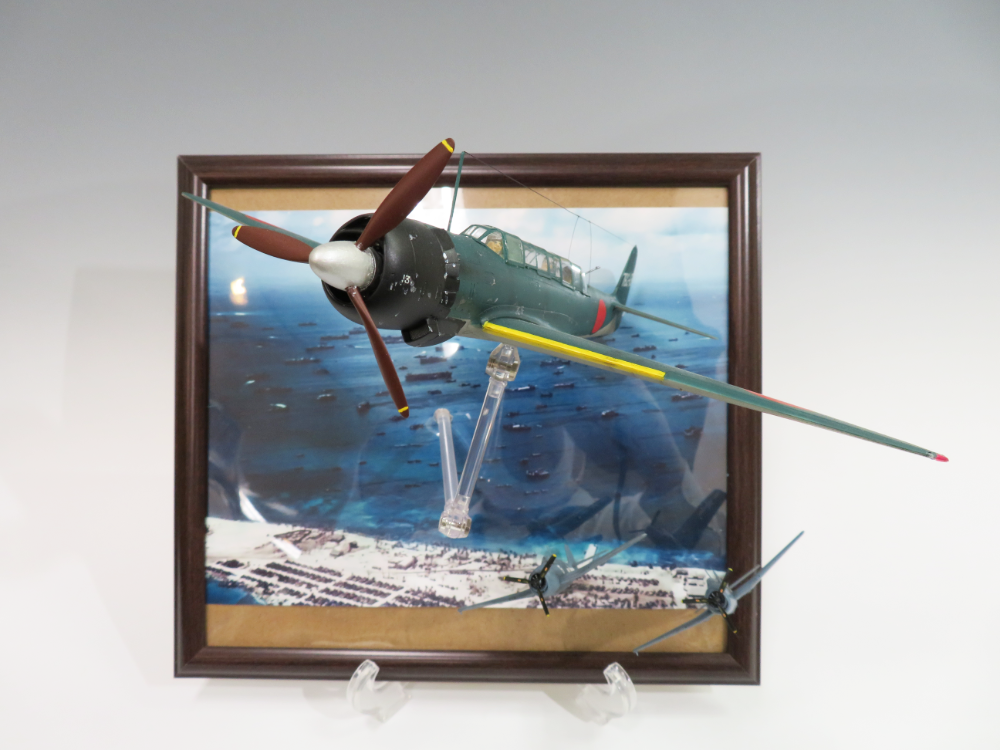 こちらもうたえもん様の作品。PLATZの1/144のF6F-5を奥に、ハセガワの1/48彩雲を手前に配置することで立体感を出しているアイディア作品です。しかし!それだけであらず!彩雲や小さいF6F-5も実に丁寧に制作されていてアイディアだけでない作品になっています。