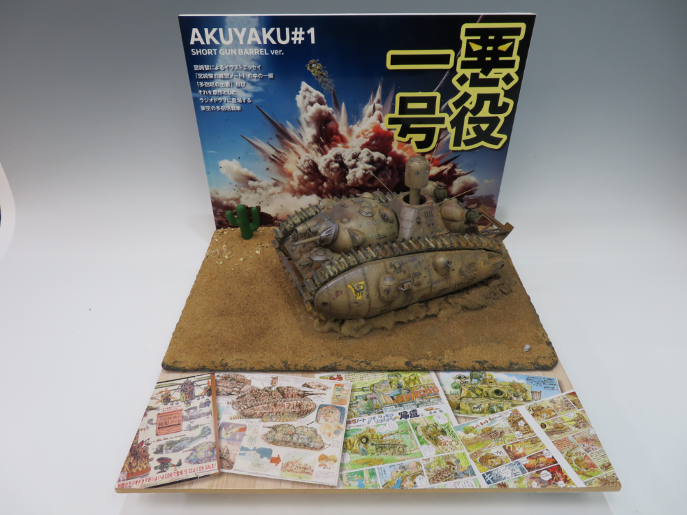 コメント:ジブリの宮崎駿の雑想ノートに登場の悪役1号多砲塔戦車。基本色はラッカー、汚しと鉄の質感はピグメントを多用しています。宮崎イズムを実感しながら、楽しんで作りました。