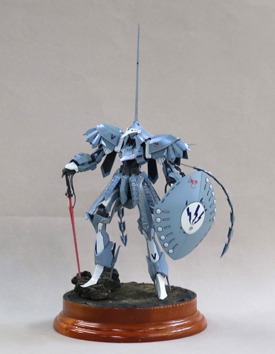 コメント:本体をファレホのメカカラー・ピュアブラックなどで、背部のバーニアをメタルパーツやM.S.Gのプロペラタンク(丸)のものに交換して、Kカラーズで塗装しました。