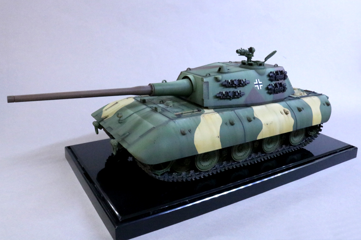 試作段階で終戦を迎えた戦車ながら、実際に運用されていたかのようなリアルな汚しと、施されたエッジングがE-100の巨大さを引き立たせていますね。