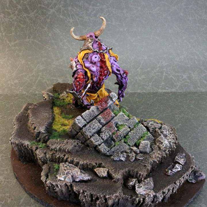また、ゾンビミノタウロスは障害物がありながら避けずにそのまま直進したことで、臓物が擦れ、血の跡ついているなど、知性のないゾンビの行動も加味された、ジオラマに仕上がっています!