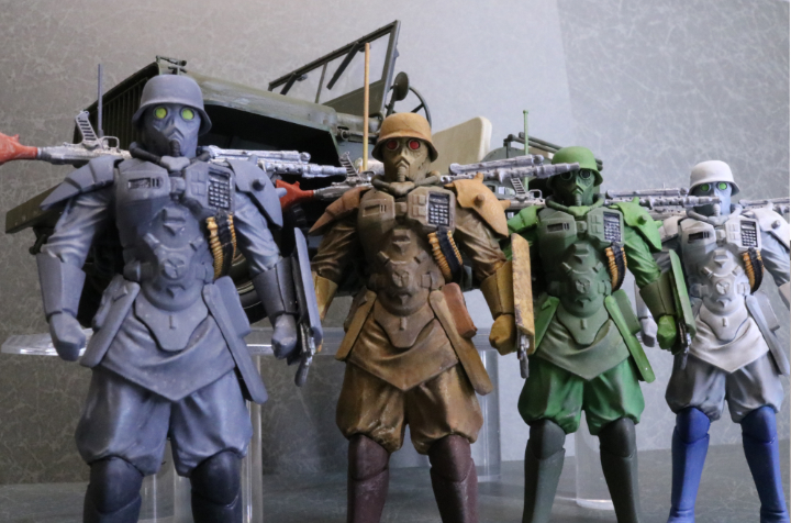 コメント:プロテクトギアのカラーを1体ずつ違うパターンにしてみました。エアブラシと筆、ラッカーとアクリルを併用してみました。
