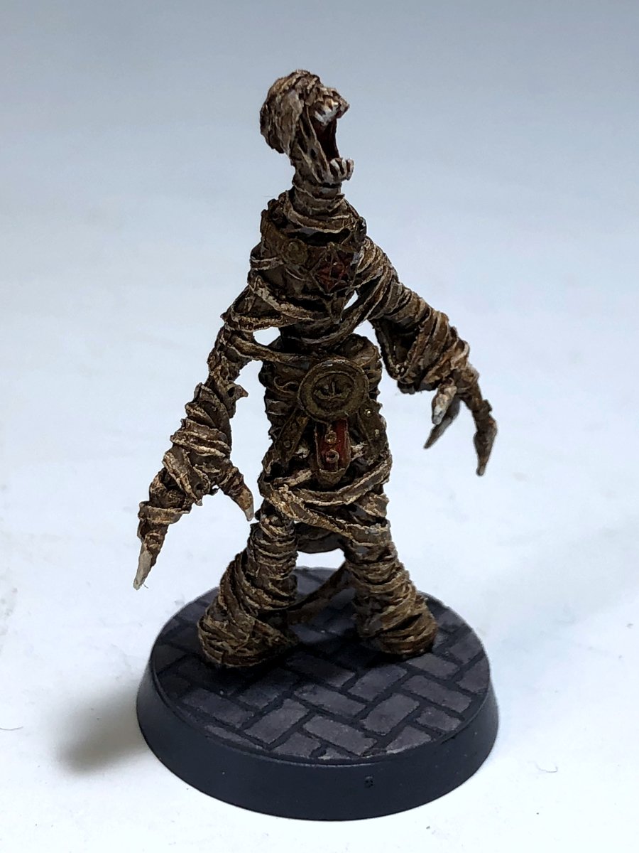 僅か32mmの小さなキットですが、体に巻き付いた包帯一つ一つに施された塗装はまさに圧巻の一言。元が灰色一色のキットとは思えないほどのクオリティです。