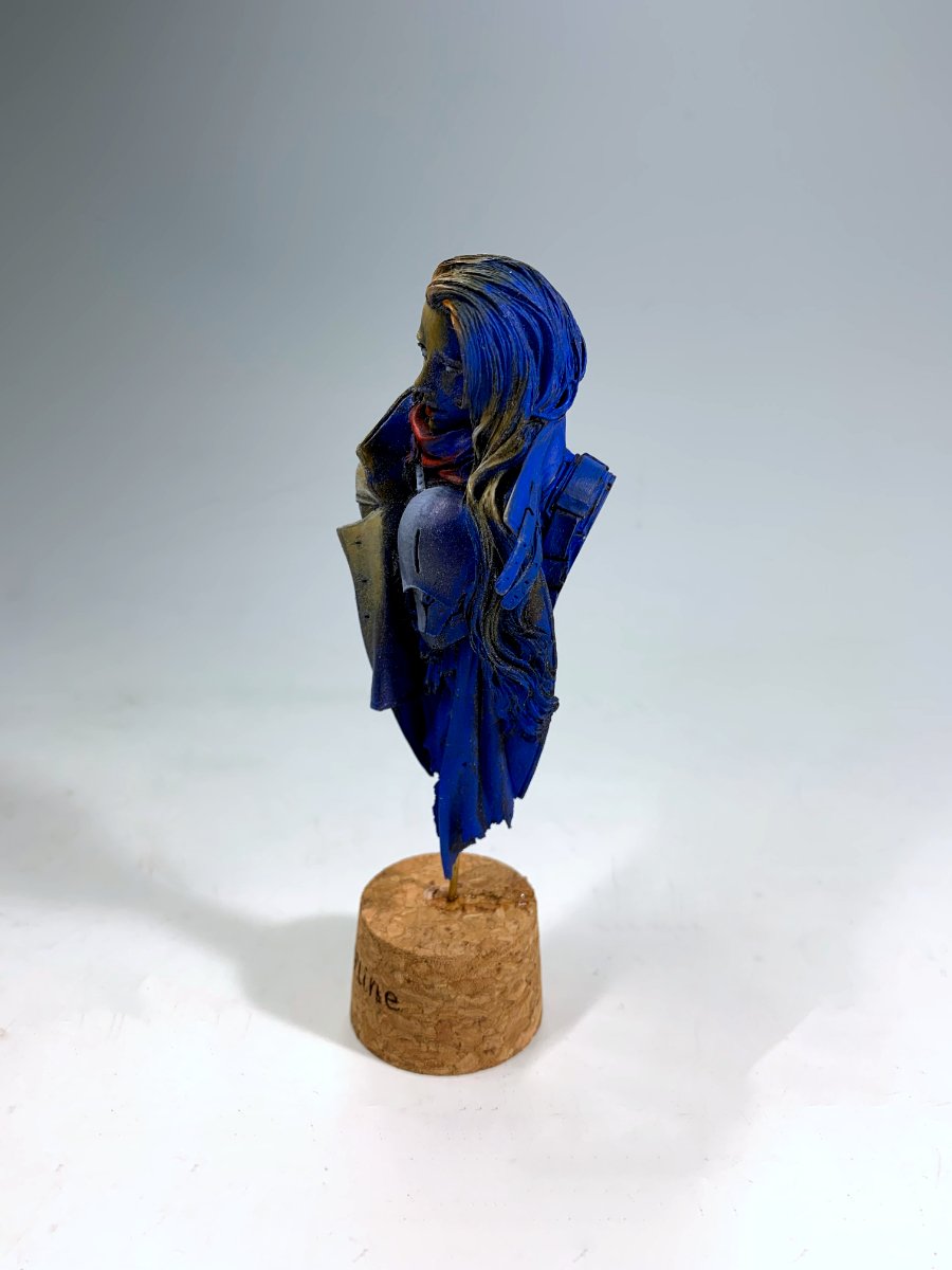 光源を塗装に落とし込むことで、陰影がはっきりでる塗り方で塗られており、儚げな表情のなかにも影を感じる作品に仕上がっています。影が青色なのもおしゃれで素敵ですね。