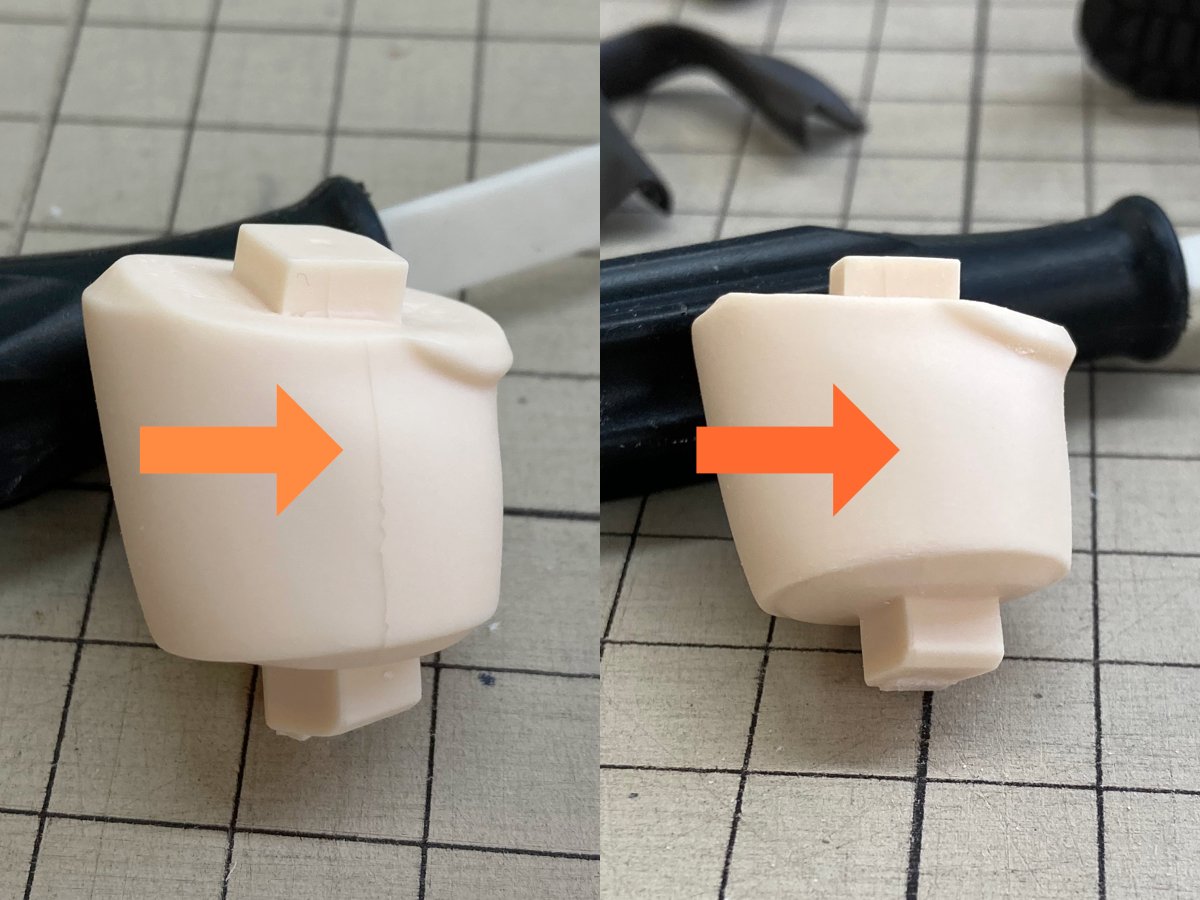 ニッパーで大まかに切ったゲートを更に削っていきます。同時に大きなパーティングライン処理も軽く削っておきます。