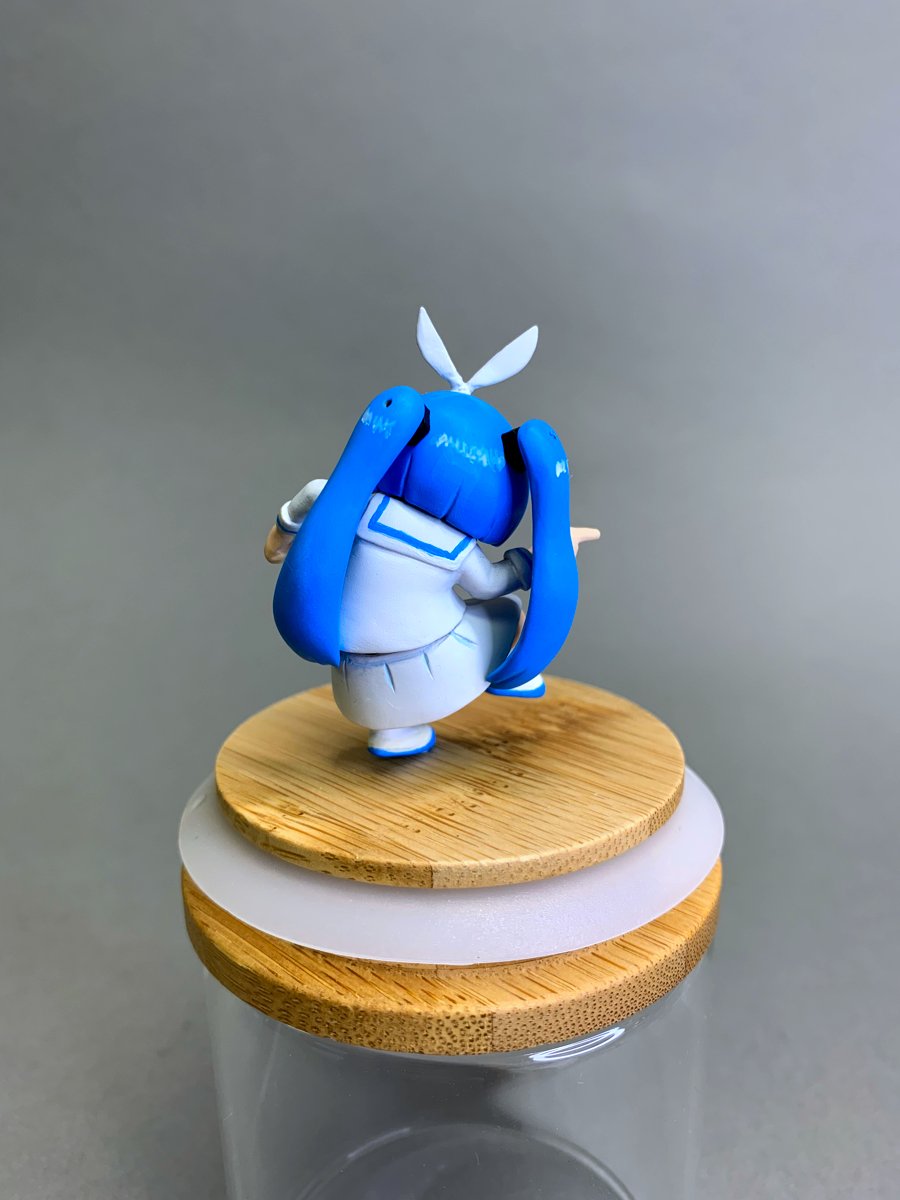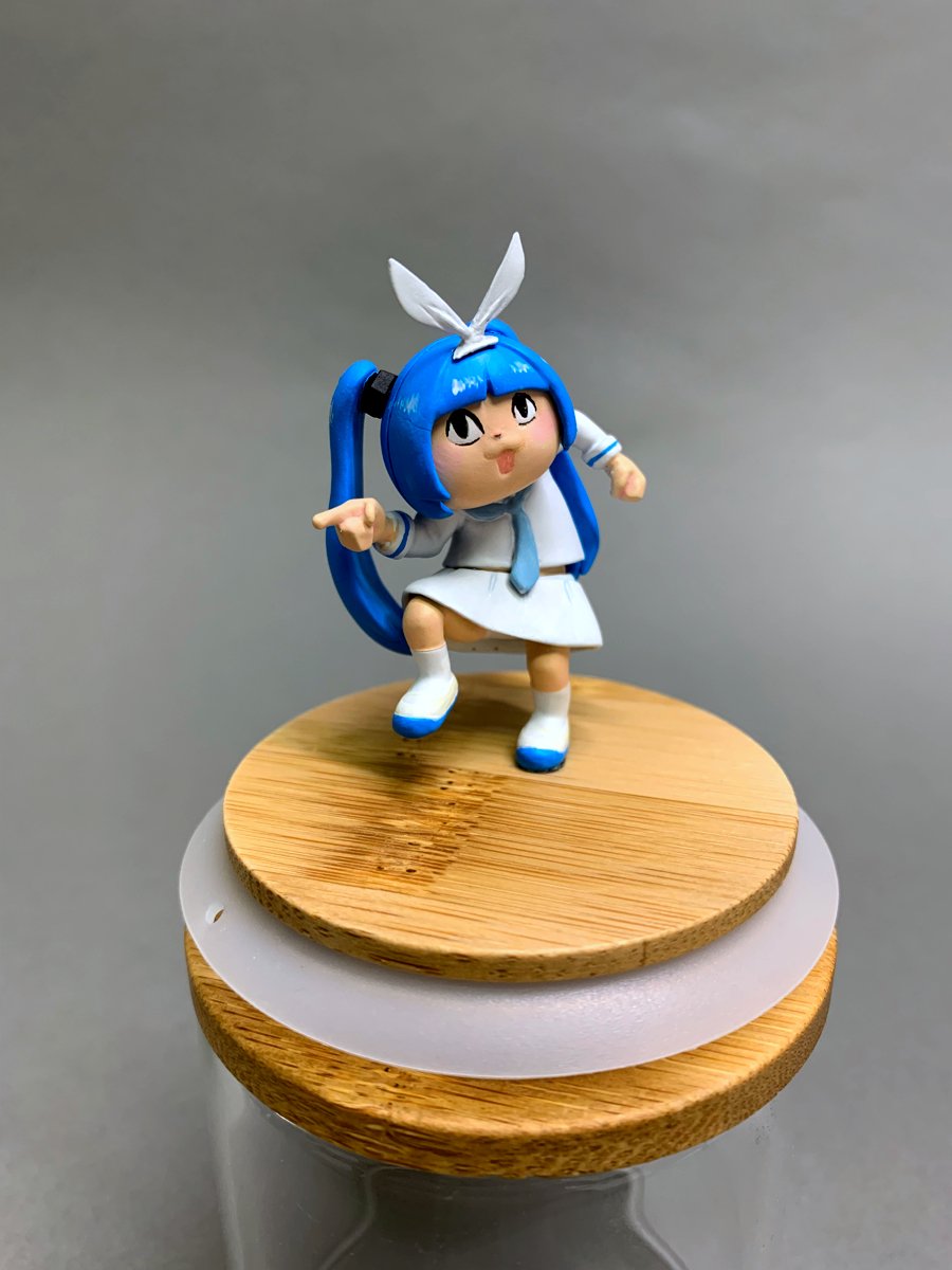 全長5cmないくらいの小さな作品ですが、指差しの指や、頭のニッパーのような髪飾りまで、精巧な出来栄え。ものすごく完成度の高いフルスクラッチ作品に仕上がっていますね!