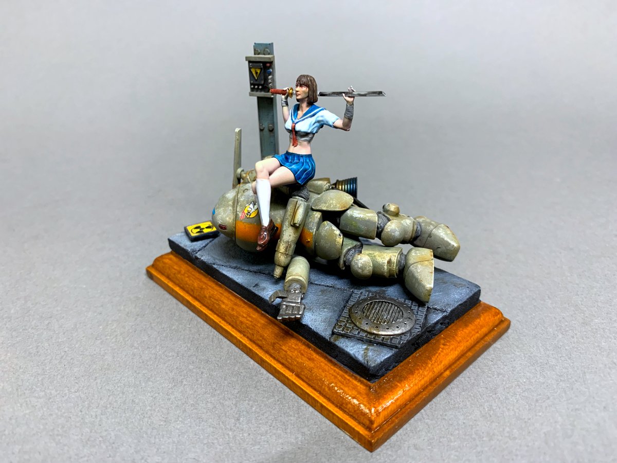 ほぼファレホ塗りですが汚し等は、エナメルを使っています。セーラー服を青で塗ったら○きメモみたいになったよ。