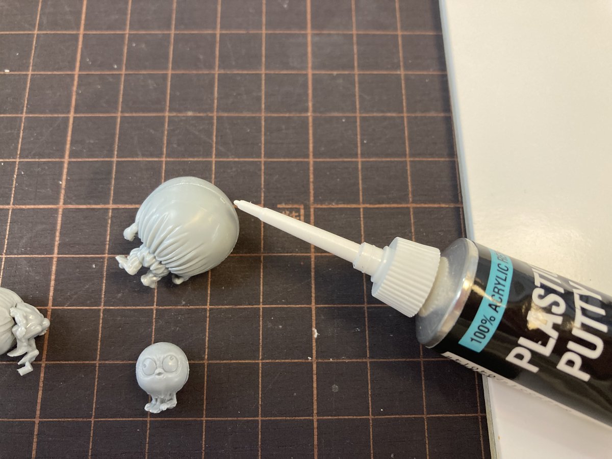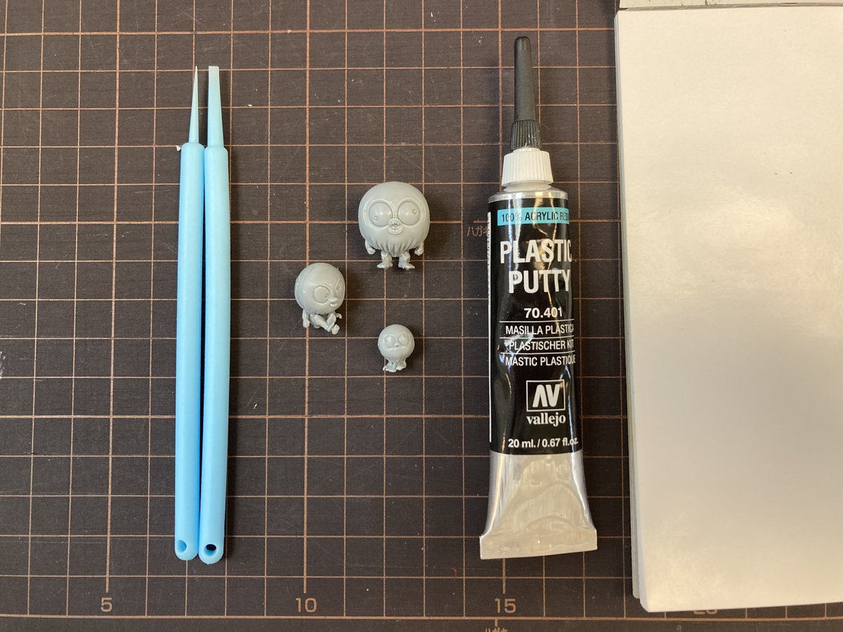 今回作るキジムナーは、頭部分にすこしパーティングラインと隙間がありましたので、ヤスリがけと隙間埋めを行いたいと思います。