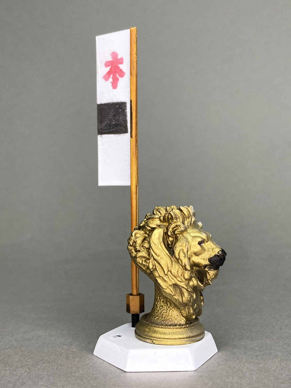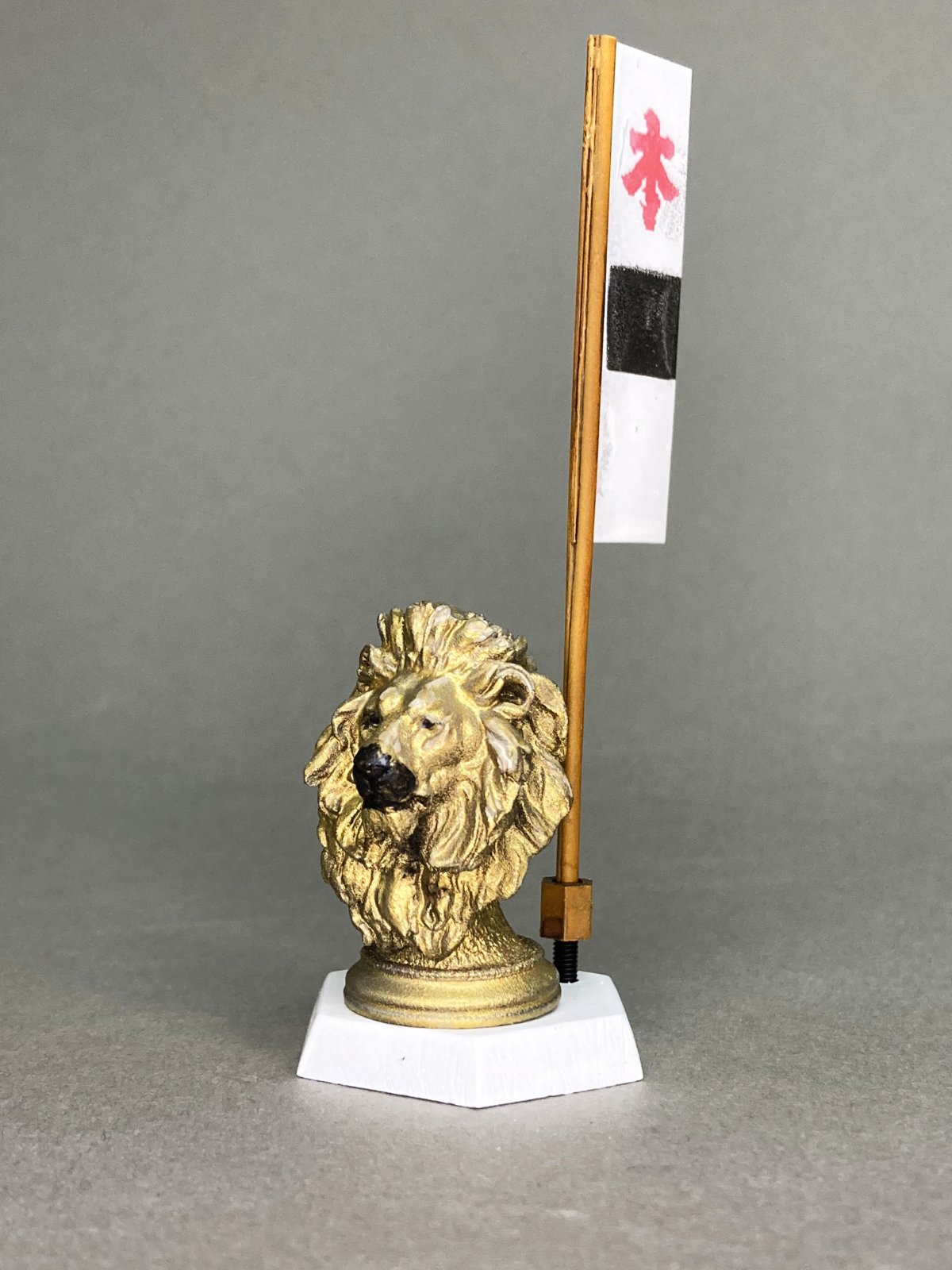 絢爛な黄金色に面頰のような口元の黒が、獅子の威厳を醸しています。