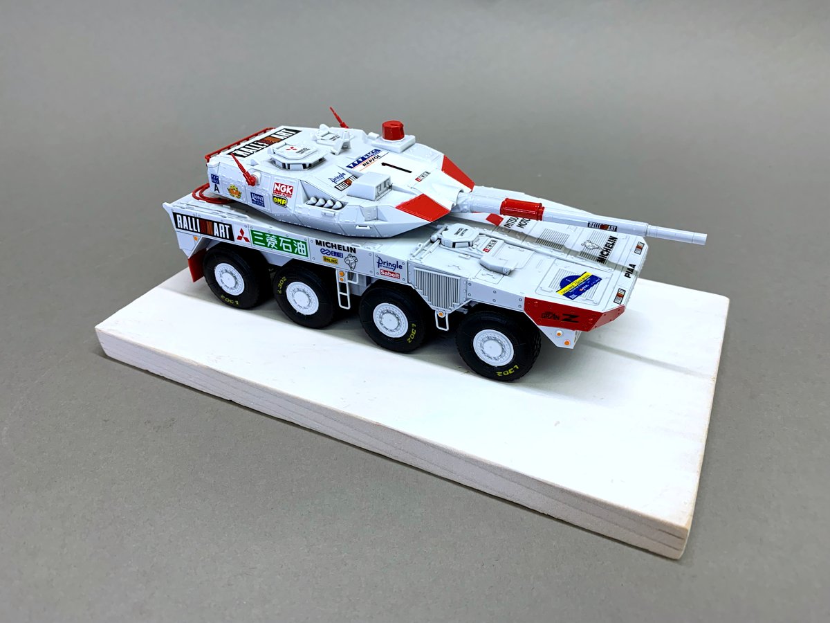 その姿はまるでレーシングカーのようで、8輪のタイヤで100km/h超の速度が出せるAFV界のスピードスターである16式機動戦闘車にぴったりな組み合わせですね!