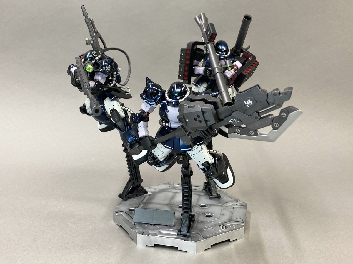 バズーカマガジンにMMP。キット化されていないザクIIを黒い三連星カラーにしました。