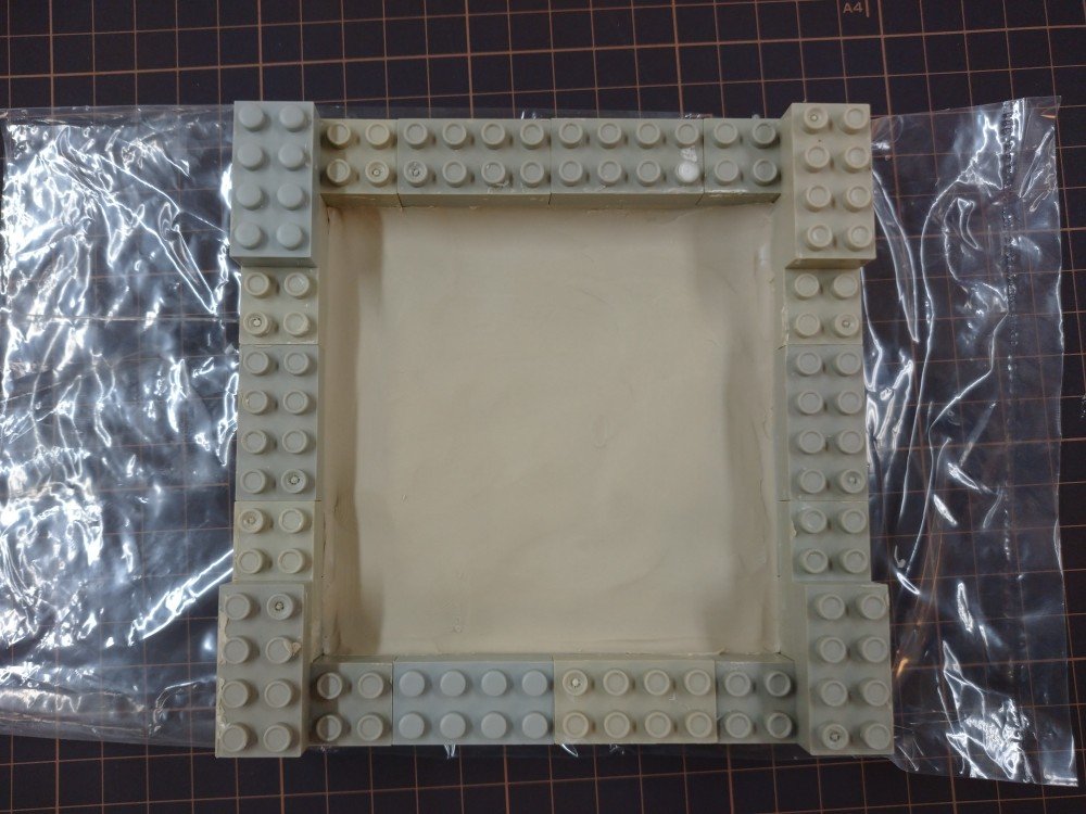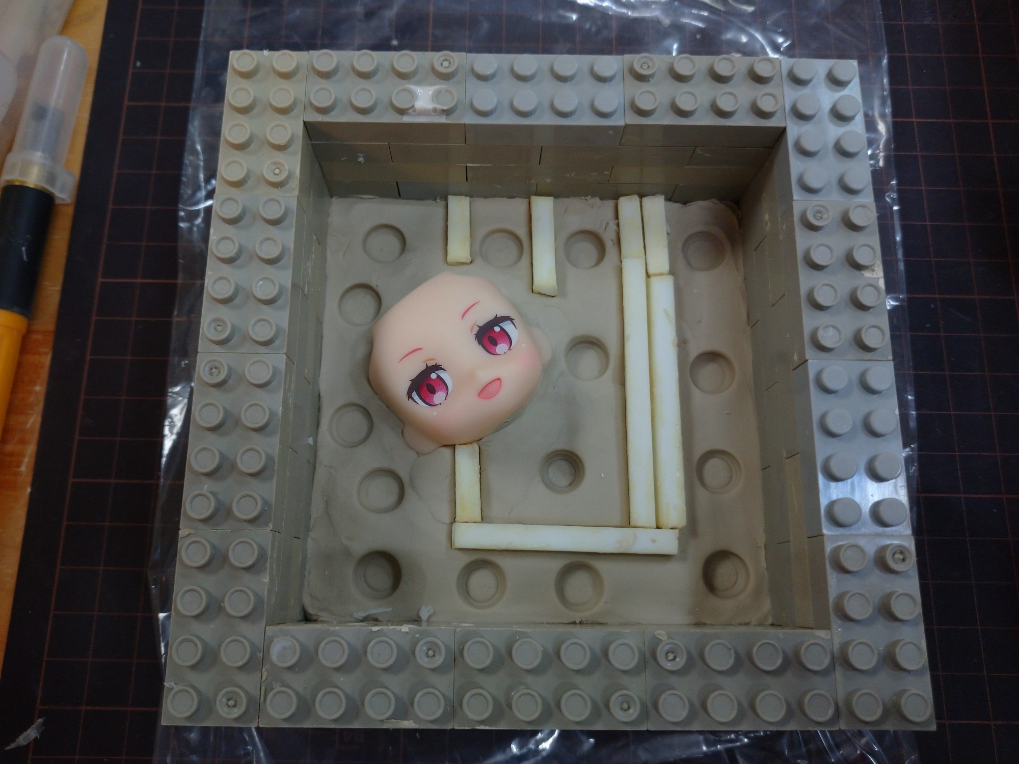 続いてシリコーンを流していきますが、その前にもう一度型を凝視して粘土の境界線とレジンの流れ方を確認して万全を期しましょう!