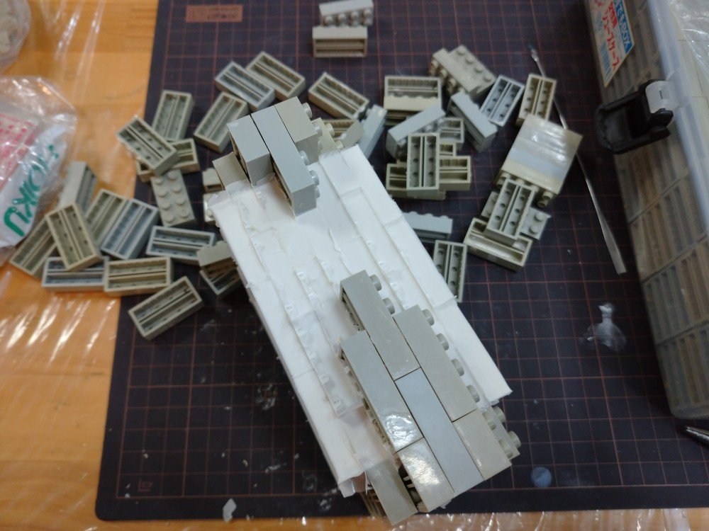この段階で型枠ブロックを高く積み上げると作業し難いので3段くらい(アイテムの形状にもよります)で作業します。