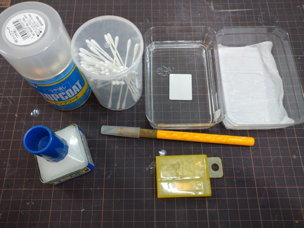 濡れティッシュ!(デカールを漬けて台紙から剝離させるのに使います)