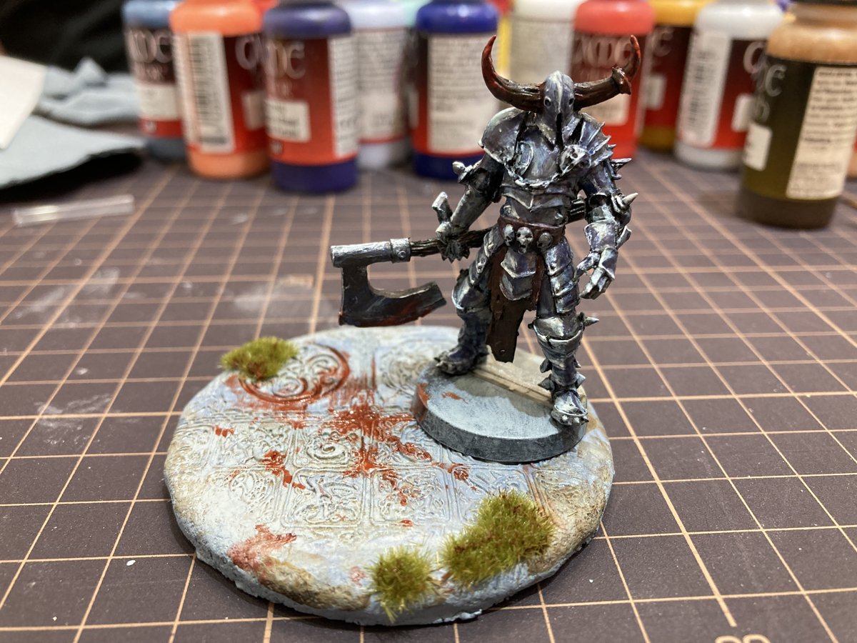 最後にベースに以前塗装した 凶戦士 をのせてSC402 シーナリー : ワイルドダークモス2mm を貼り付けました。
