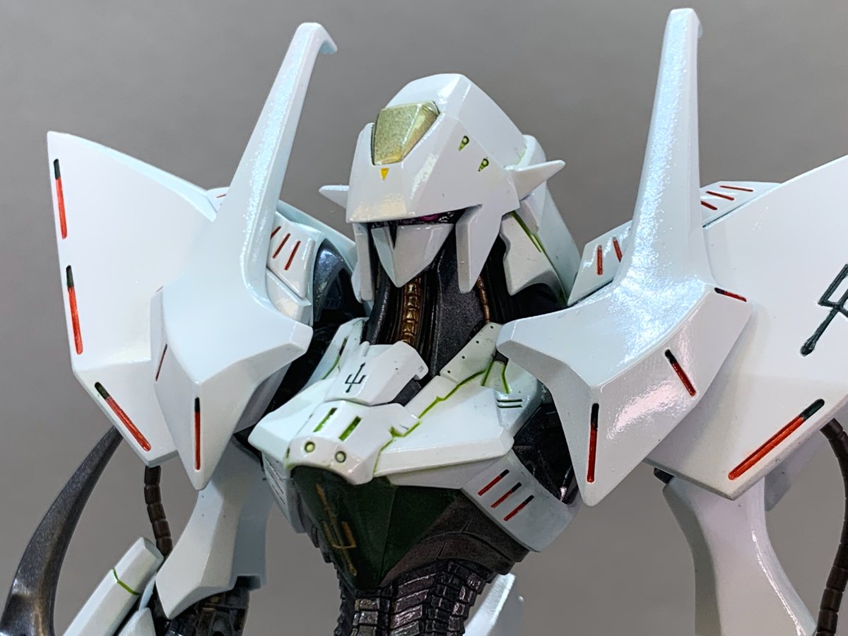 アップで見ると良く分かるのですが、胸の白色装甲の緑のラインがオシャレで良いですね!素敵です!