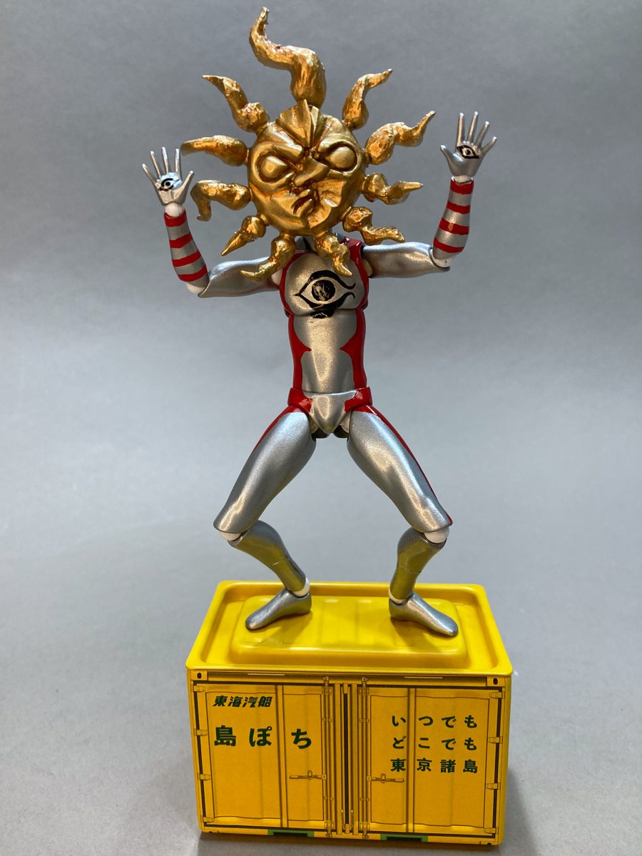 両手のタローアイをマスクの前に掲げるポーズは必殺技の「芸術は爆発だ」ポーズ! 文字通り芸術が爆発したような作品に仕上がっていますね!