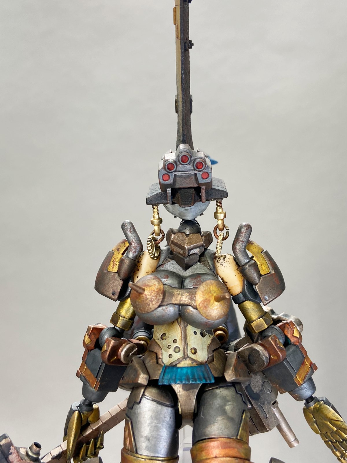 造形が素晴らしく塗っていてどんどんかっこよくなっていくキットでした。金属色を色々混ぜて塗ってみました。