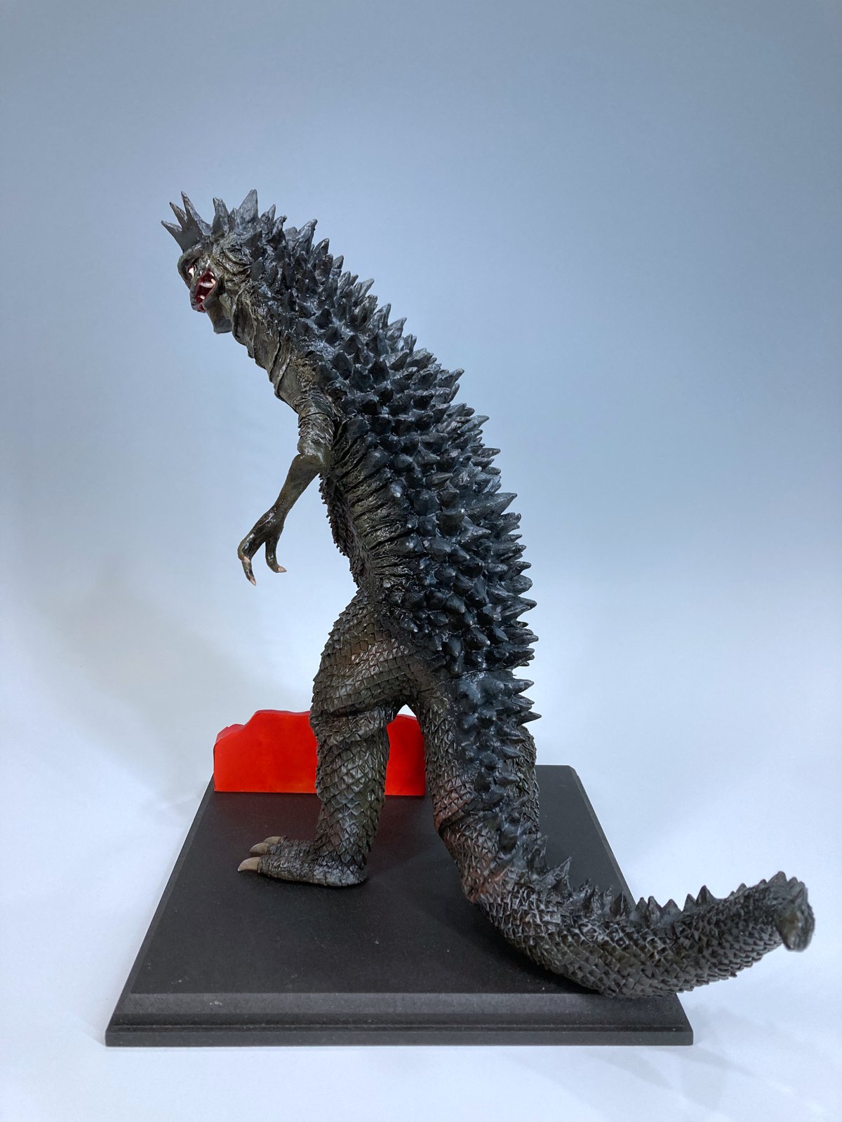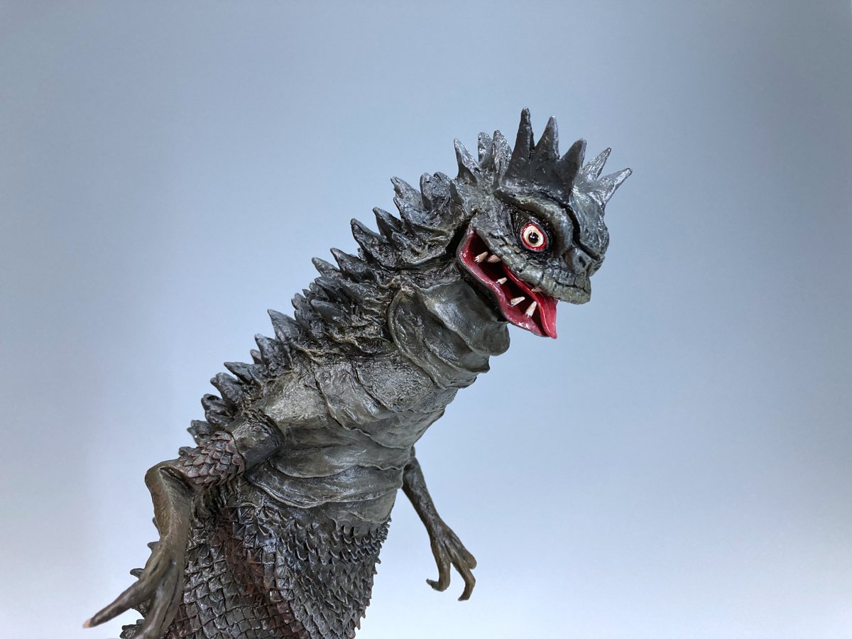 モデルカラー 70866 #165 グレーグリーン を中心に 70862 #168 ブラックグレー や 70971 #106 グリーングレー で陰影が施された体表が、怪獣らしいディティールを生んでいます。