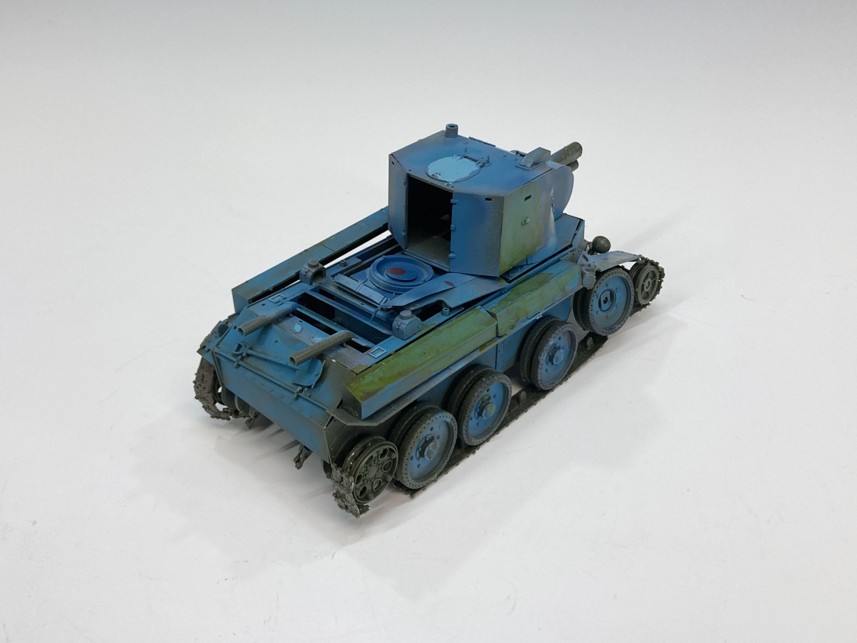 本体色ターコイズ+ジェイドグリーン、側面赤部ブラッドレッド、アンテナ部ホワイトを使用。本体をエアブラシ、側面、アンテナは筆塗り。