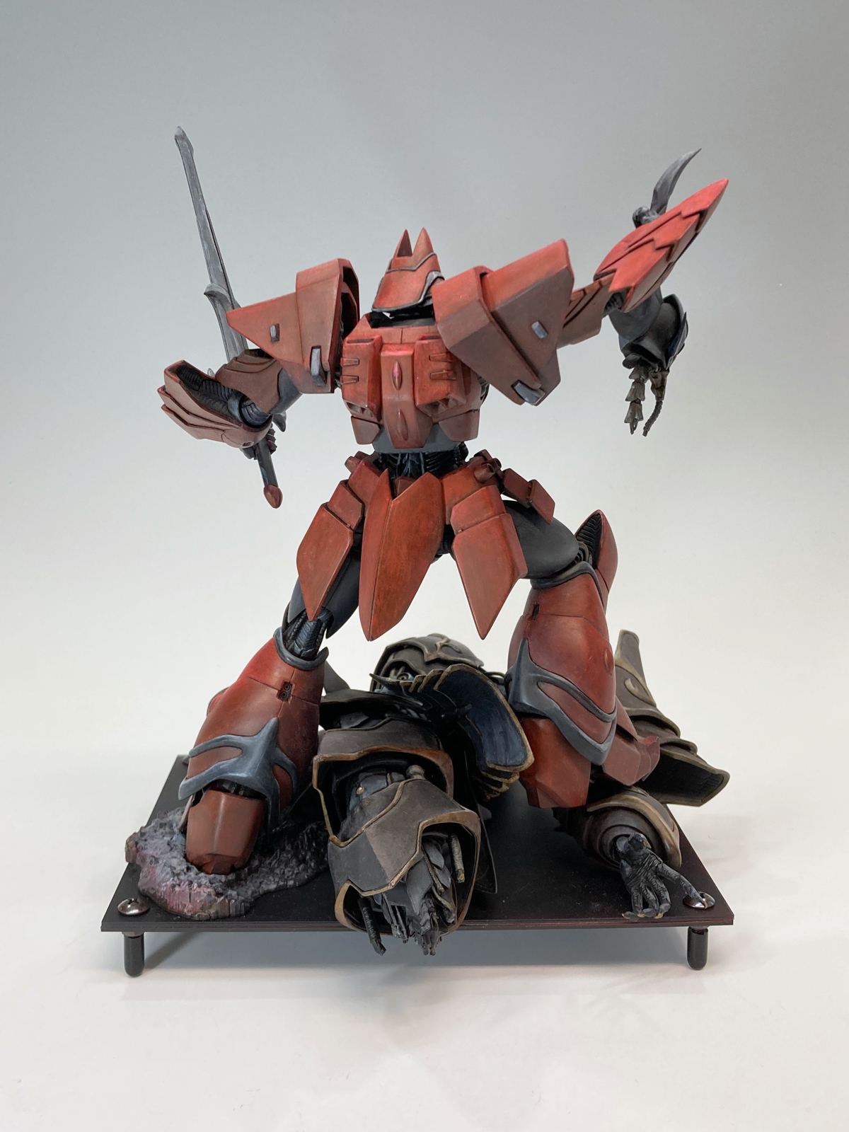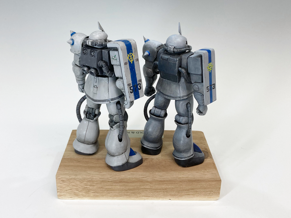 旧キットはファレホ筆塗り、HGはラッカーエアブラシ後にフィルタリング、ウェザリングをファレホで行いました。これを同時に作れる良い時代だと思います。