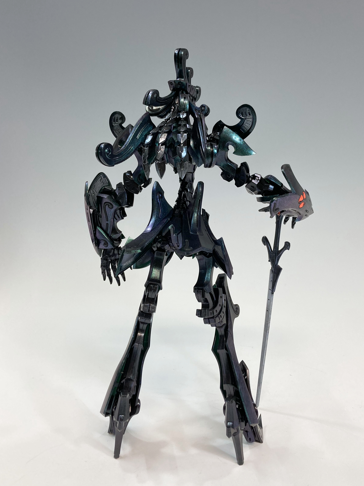 曲面の多いキットを偏光カラーセット 77092 ギャラクシーダスト で筆塗りすることによって、1つのパーツの中での偏光を楽しむことができる作品となっています。