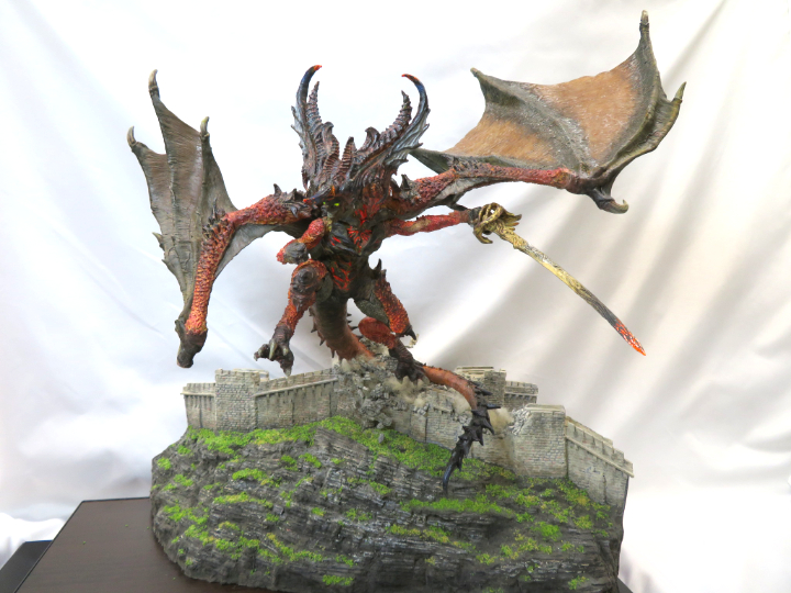 ゼロテ社の全長19センチを超える大型キット「魔神」を用いた超大作!今にも動き出しそうなダイナミックなポーズ、細部にまでこだわられたジオラマ、全てが規格外な迫力の作品です。一部に蛍光色を用いて怪しく光る不気味な魔神のイメージをさらに際立たせています!