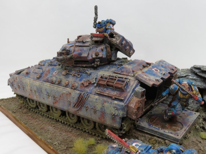 1/35スケールのM2ブラッドレーと約4cmのウォーハンマーとの組み合わせですがスケールの違和感を感じさせない世界観が展開されています。