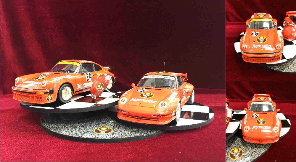 ドイツのリキュールメーカー「イェーガーマイスター」をメインスポンサーにしたマックスモリッツ・チームの2台のポルシェ934は鮮やかなオレンジカラーが特徴です。