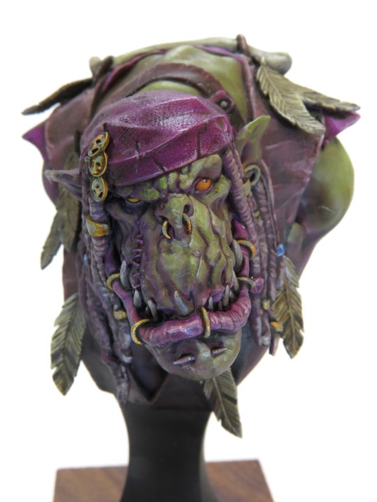 緑と紫のコントラストや各部の材質の塗り分けが素晴らしく、アクセサリーの錆びた金属感、皮衣装の硬さを表した塗装表現などレジンキットではなくパパ・ジャンボを構成する各素材が実際に組み合わさったかのような仕上がりとなっています。